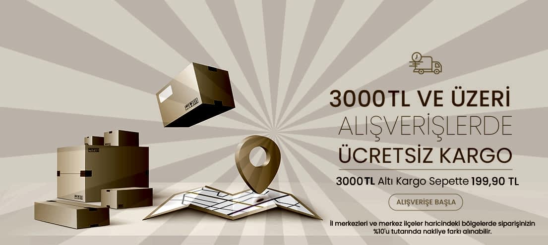 3000 TL ve Üzeri Alışverişlerde Ücretsiz Kargo!